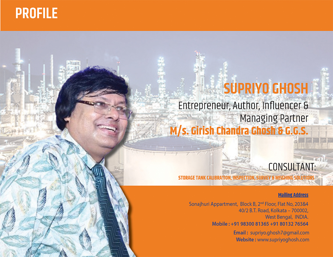 Abroad Work area in Calibration of Storage Tank Inspection & Service. Supriyo Ghosh is not only an industrialist but also a social builder.