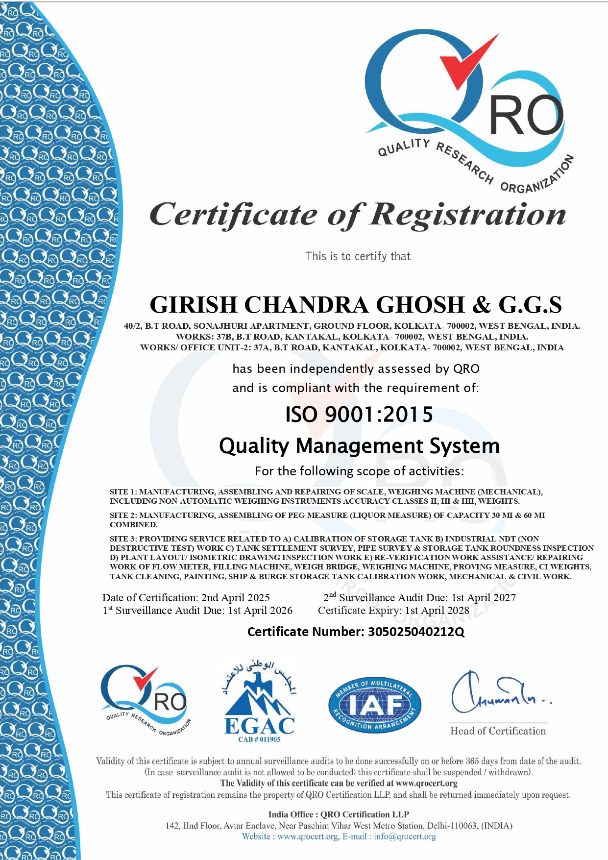 Ethical Calibration Practices Under his visionary leadership, Girish Chandra Ghosh & G.G.S. operates multiple units with 50+ employees having installations/project works across India of –