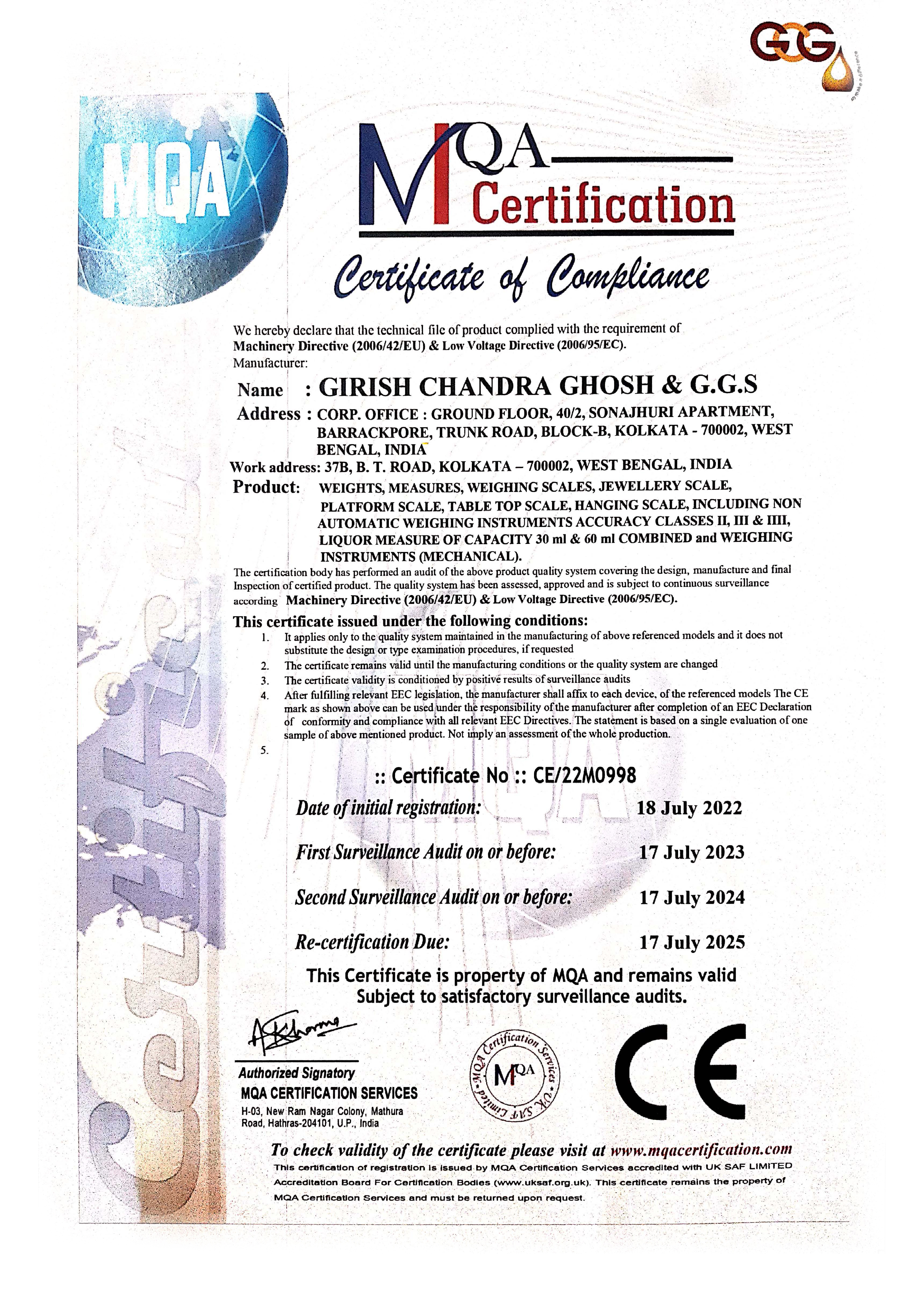 Ethical Calibration Practices Under his visionary leadership, Girish Chandra Ghosh & G.G.S. operates multiple units with 50+ employees having installations/project works across India of –