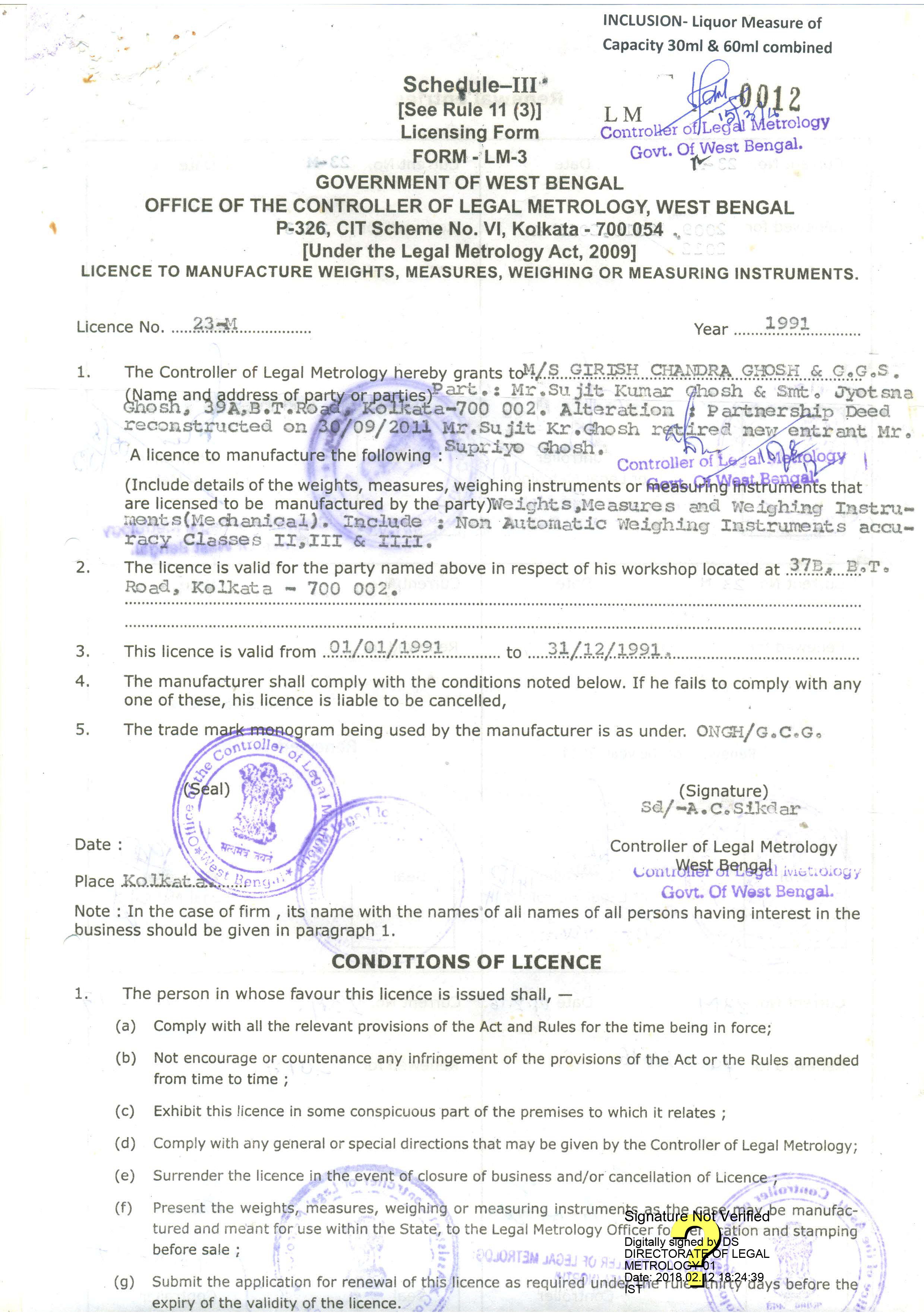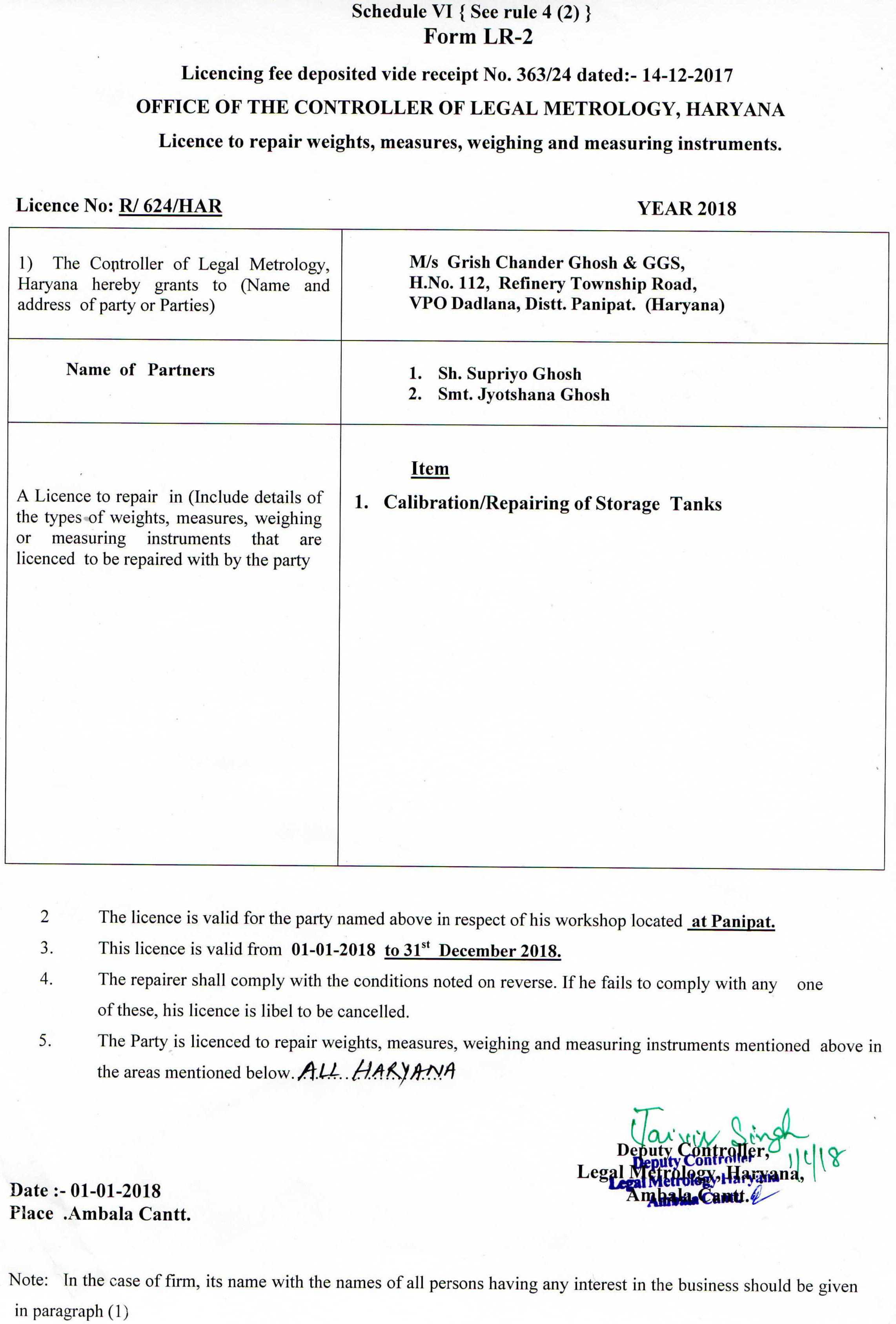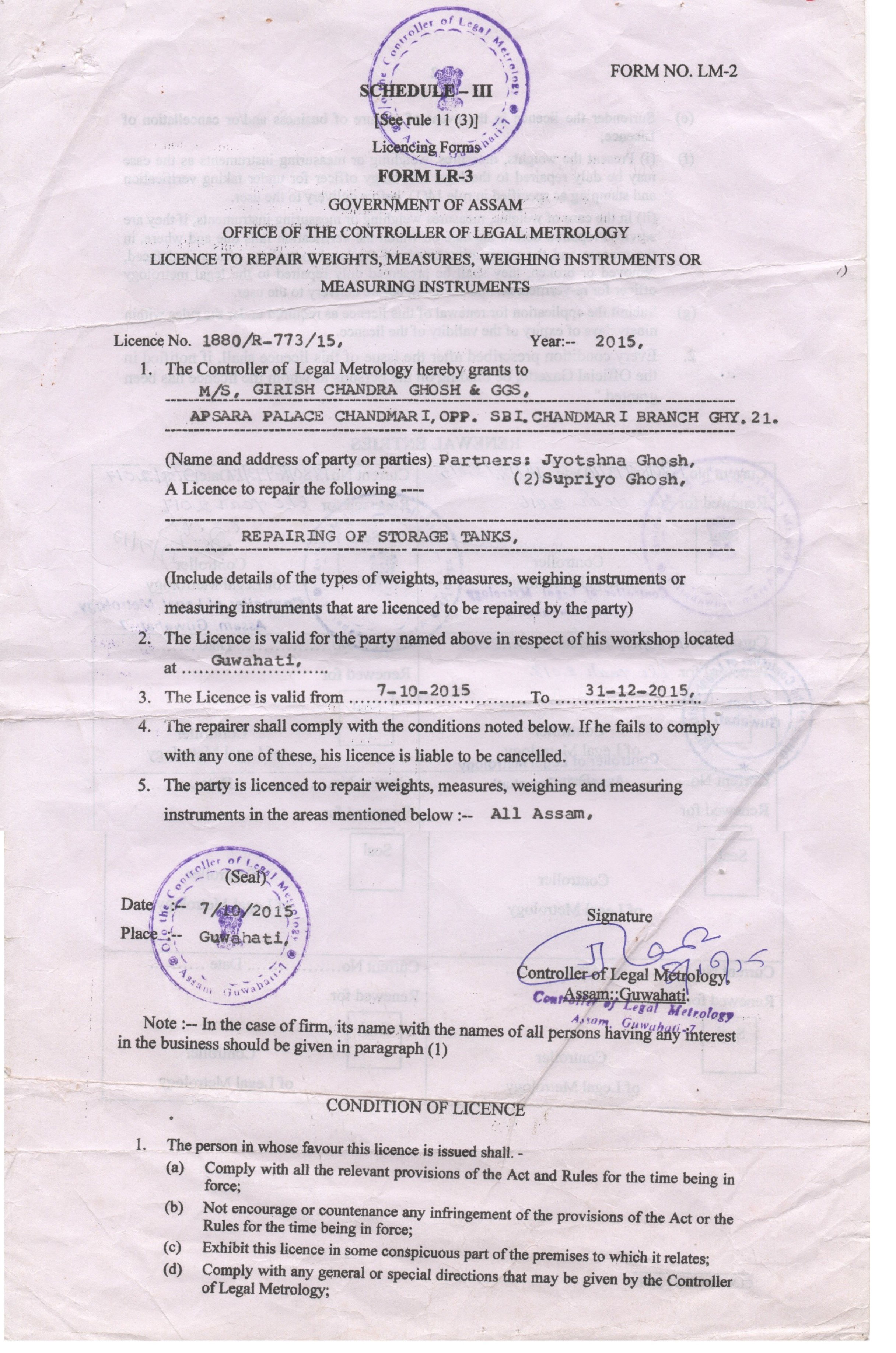 2009-1975 : As per the provision of section 27of the standard weights and < General > measure rule 2011 no weights and measure shall be sold or offered possessed for sale use of kept for use in any transaction or protection unless it has been verified & stamp and as provided in State Enforcement Rule 2011 framed under the Legal Metrology act 2009. The storage tank including vats used or intended to be used in any Transaction or tor protection must be revivified or recalibrated and stamp at least once in 5 years the definition of the word the Transaction defined in 2 < u > of the standard Legal Metrology act 2009 under which the said act has been enacted which runs as follows :-(i) any contract for Sale, Purchase, Exchange or any other purpose.