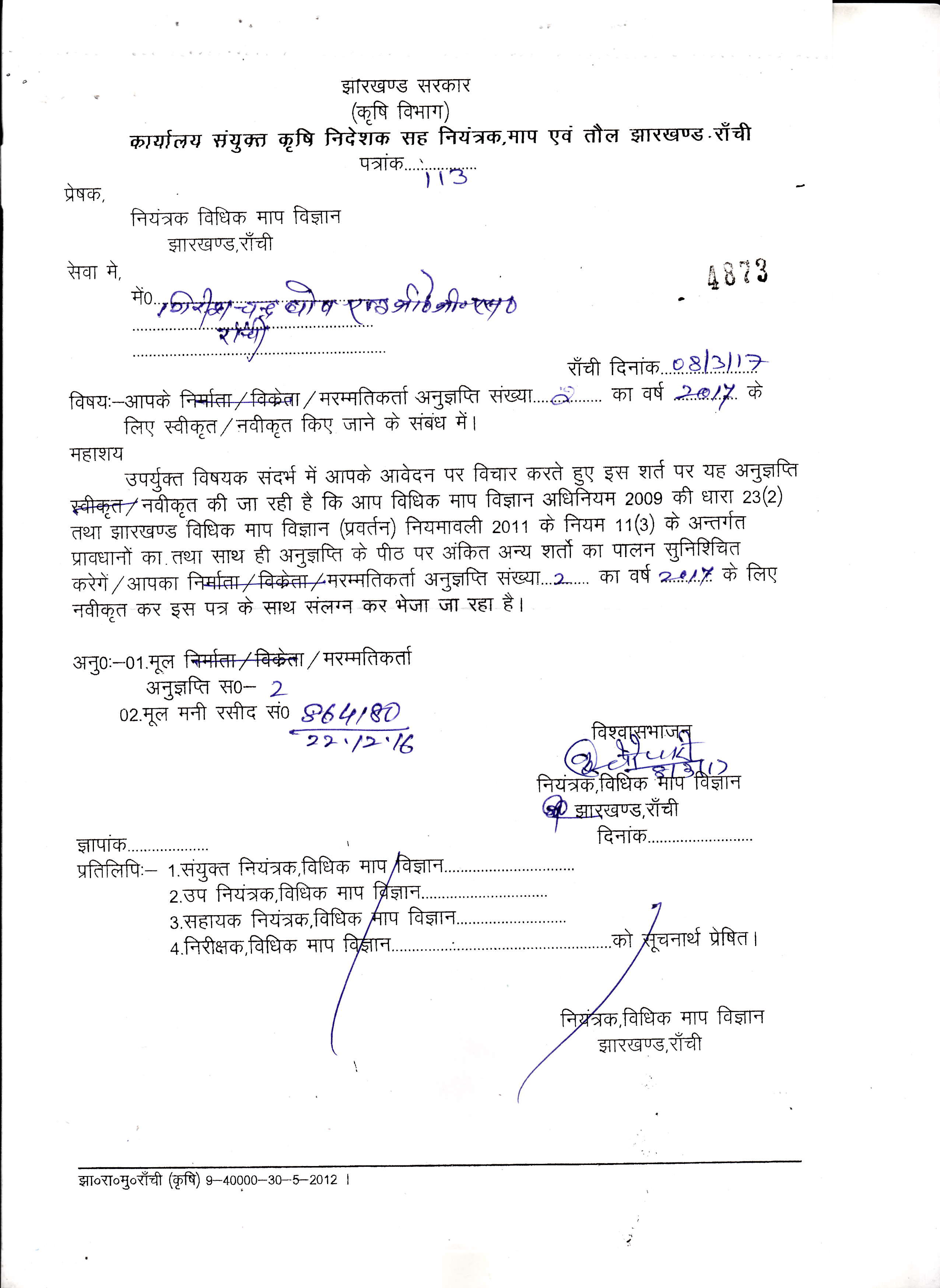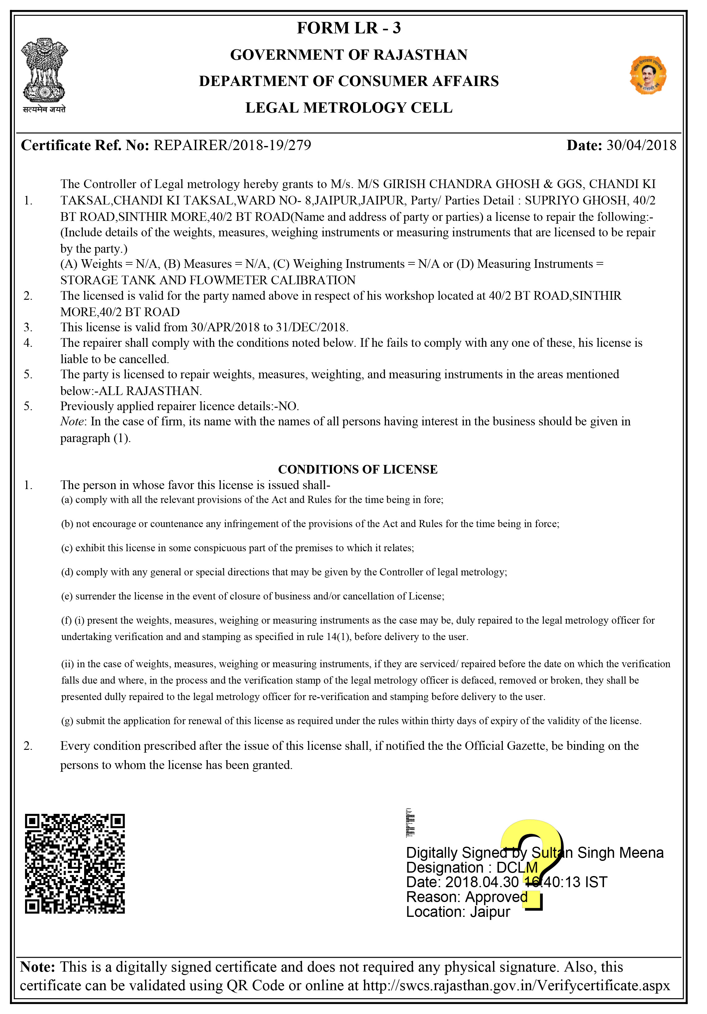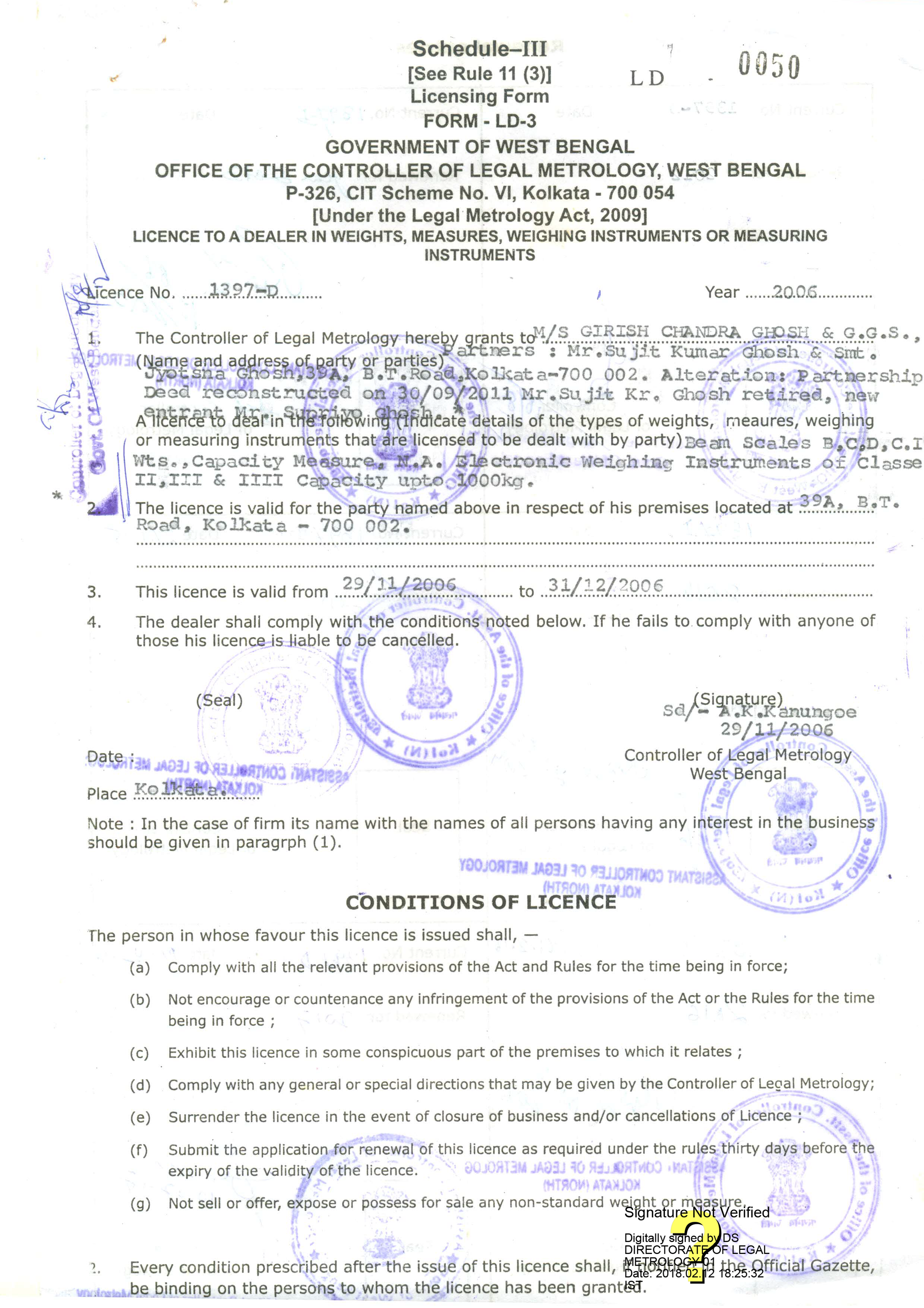 2009-1975 : As per the provision of section 27of the standard weights and < General > measure rule 2011 no weights and measure shall be sold or offered possessed for sale use of kept for use in any transaction or protection unless it has been verified & stamp and as provided in State Enforcement Rule 2011 framed under the Legal Metrology act 2009. The storage tank including vats used or intended to be used in any Transaction or tor protection must be revivified or recalibrated and stamp at least once in 5 years the definition of the word the Transaction defined in 2 < u > of the standard Legal Metrology act 2009 under which the said act has been enacted which runs as follows :-(i) any contract for Sale, Purchase, Exchange or any other purpose.